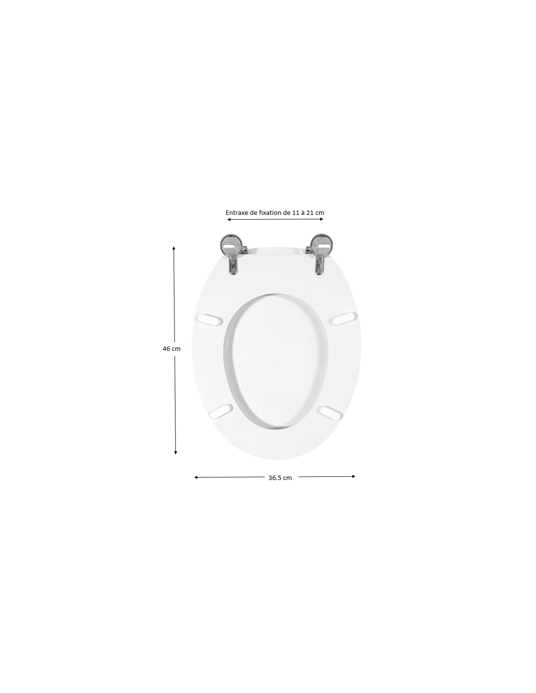 Cet abattant est spécialement conçu pour les toilettes Arpege de Allia, en respectant les mesures d'origine du produit.
