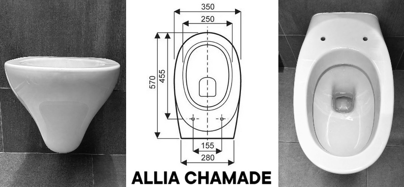 Cet abattant est spécialement conçu pour les toilettes Chamade de Allia, en respectant les mesures d'origine du produit.