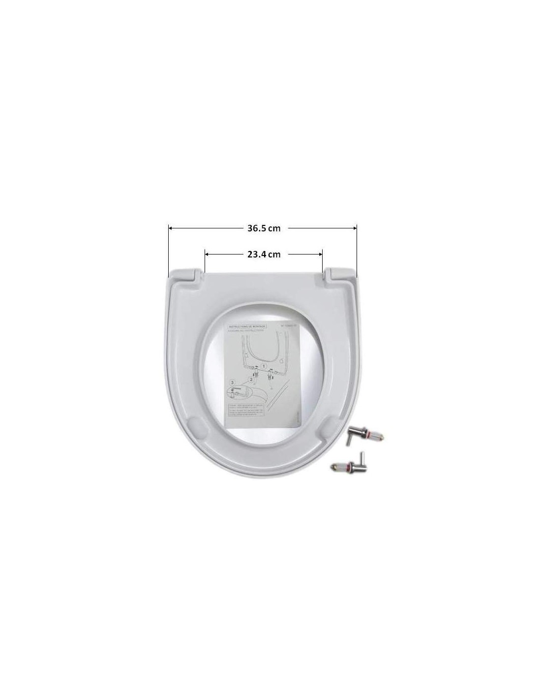Lunette WC en resine polyester anti-humidité avec charnières et ferrures en acier inoxydable incluses.