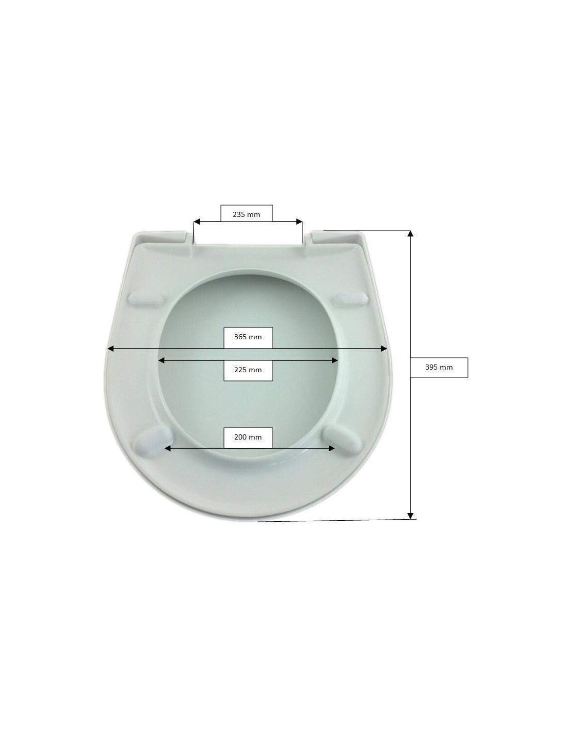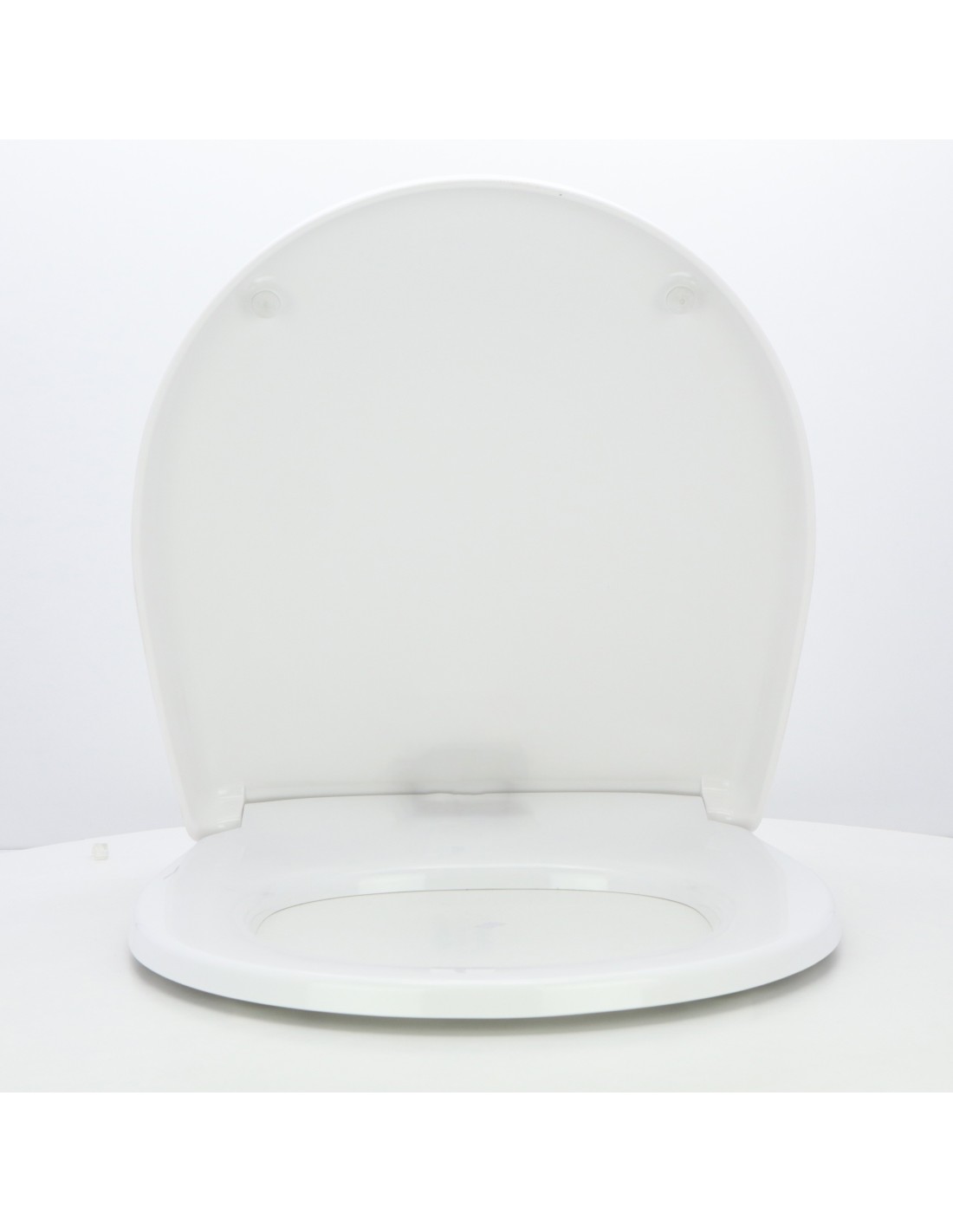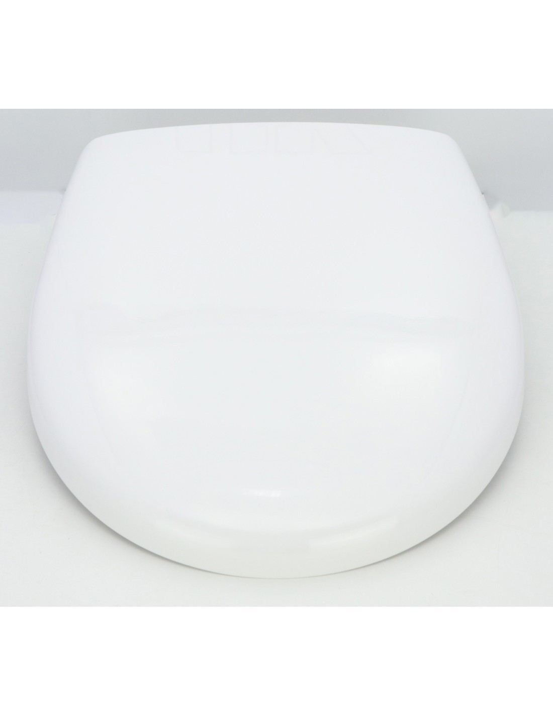 Lunette WC en résine polyester avec charnières et ferrures en acier inoxydable incluses.